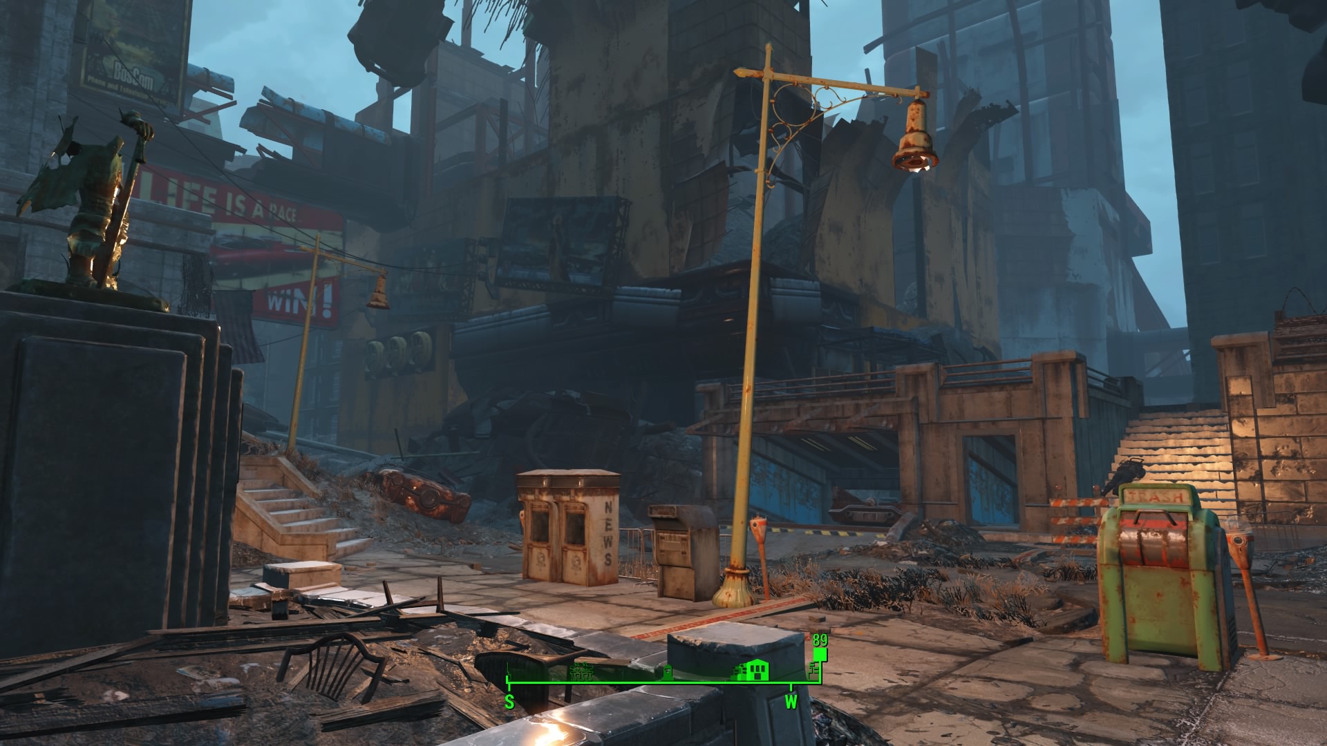 Mit Partner MacCready (genau: Der „Bürgermeister“ aus Little Lamplight (FA3) ist „erwachsen“ geworden) und „des Problemlösers“ Gaussgewehr.