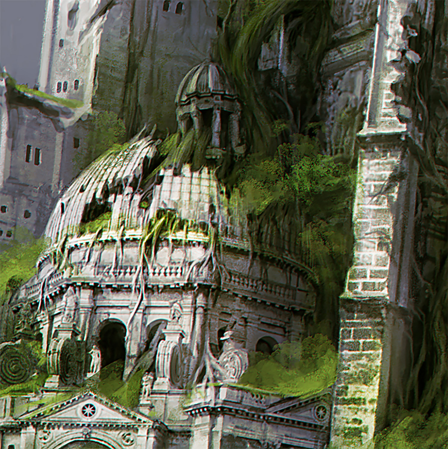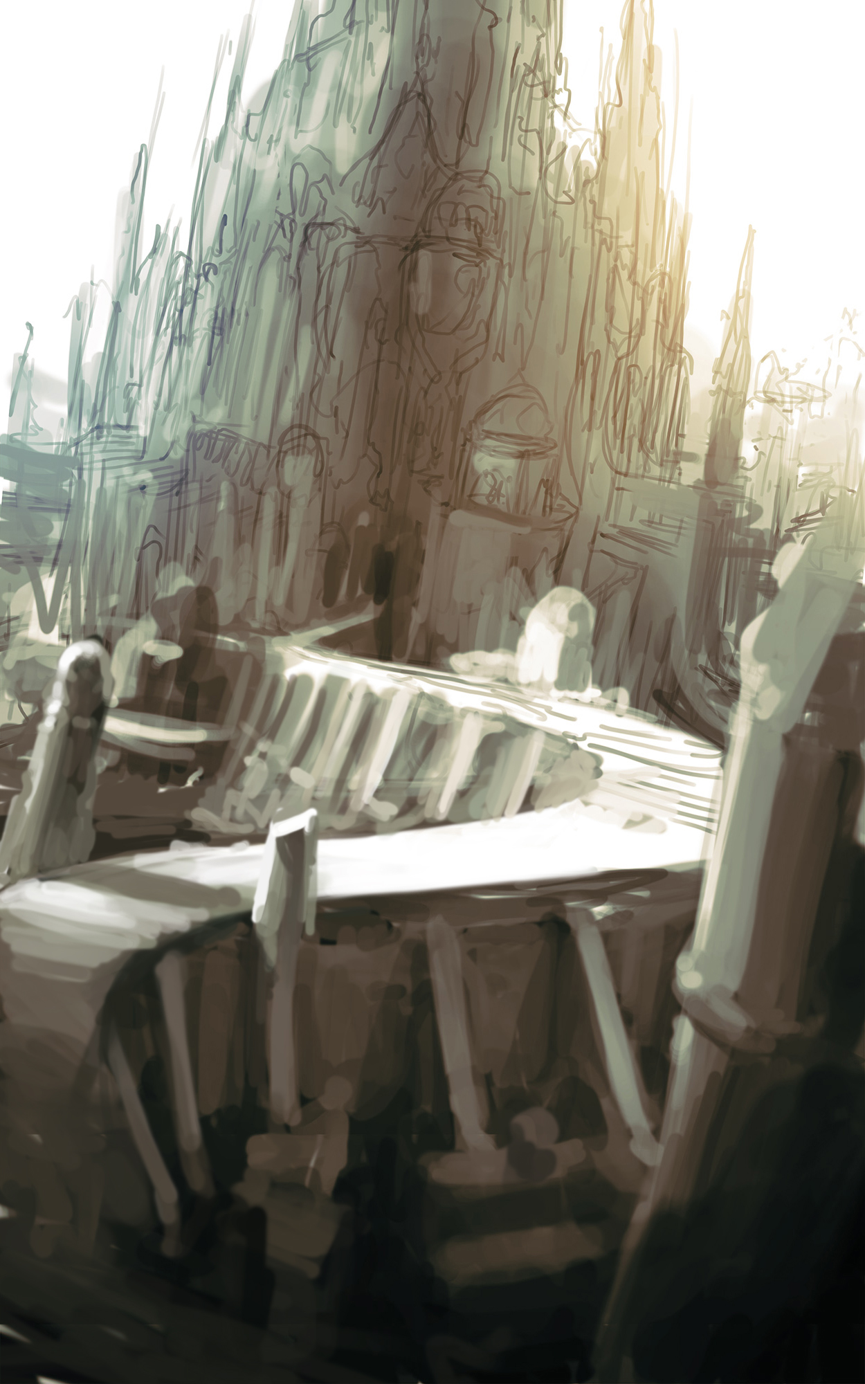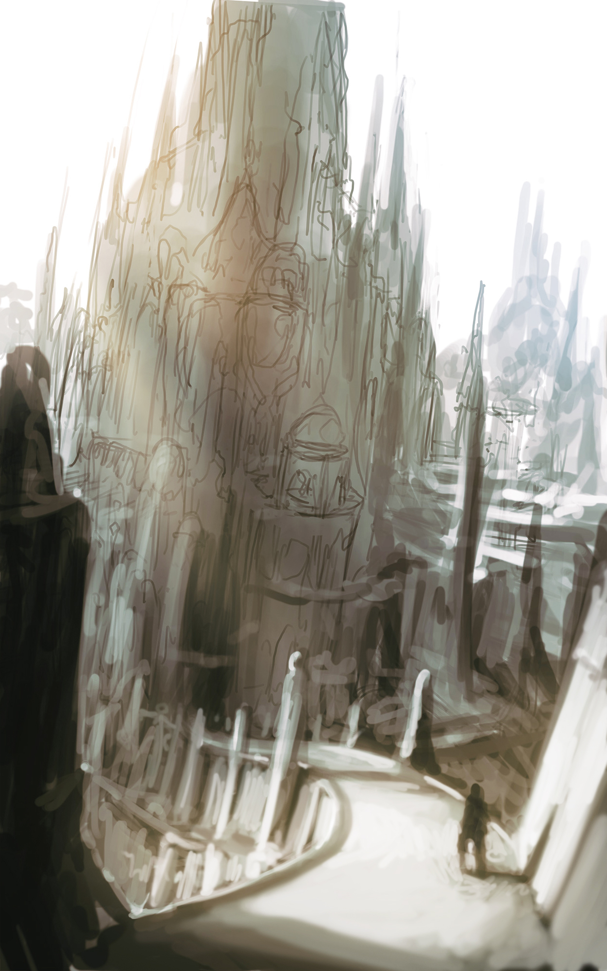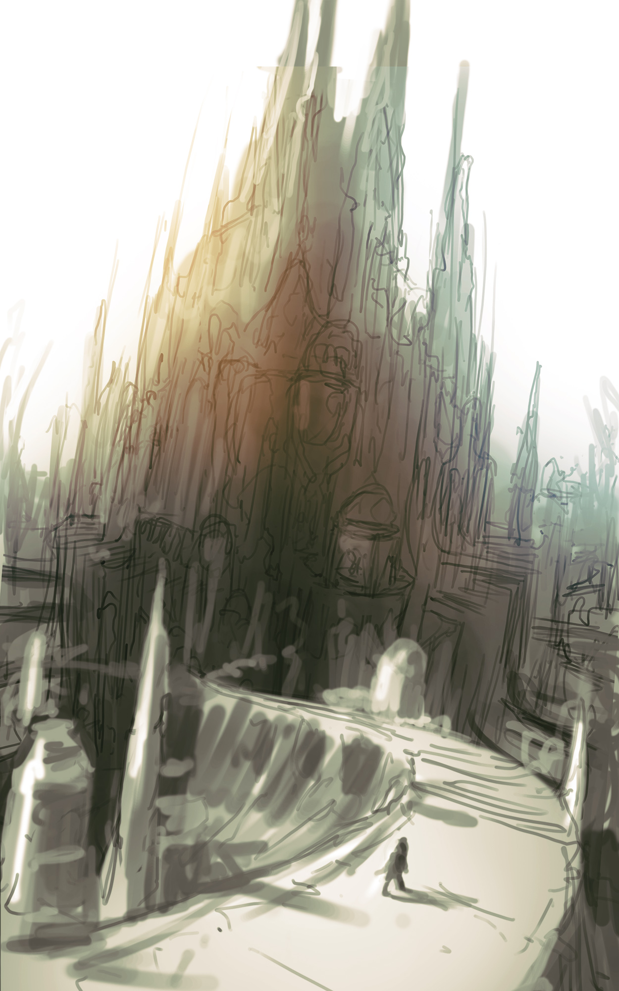 Das Konzept gefiel uns und wir beschlossen in diese Richtung zu gehen. Verworfen haben wir die weiße Farbgebung. Ich hatte das Gefühl, dass sie ein anderes Genre erzählt. Fantasy oder High-Fantasy. Die Dunkelheit der Endzeit fehlte.